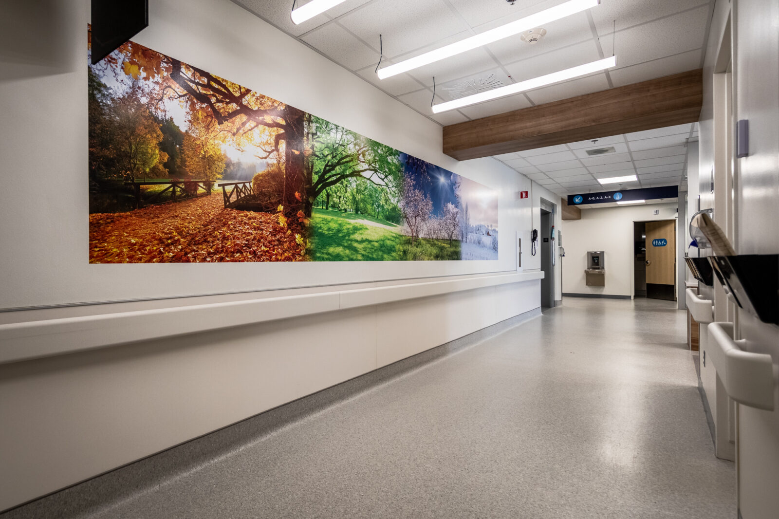 Les améliorations architecturales ont permis d'offrir aux parents et aux nouveau-nés un environnement plus accueillant, plus intime et plus confortable. Le réaménagement comprenait la peinture des chambres et des espaces communs, le remplacement des stores par des volets, le remplacement des revêtements de sol et des protections murales, et le remplacement des comptoirs stratifiés par des comptoirs moulés.